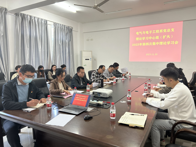11月20日下午,我系在玉成楼4208会议室召开党总支中心组(扩大)第四次集中理论学习会,会议由系党支部书记甘锦琛主持并讲话,系部领导班子、总支委员、支部委员、党务工作助理中心负责人参加会议。