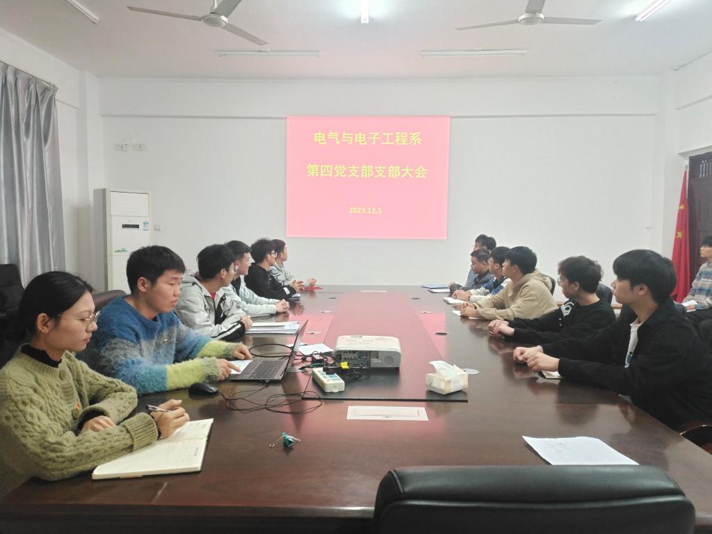2023年12月5日下午17:30在4208会议室召开接收预备党员支部大会,讨论接收郭伟等九名同志为预备党员的问题,会议由李锐书记主持,第四党支部全体在校党员参加会议。