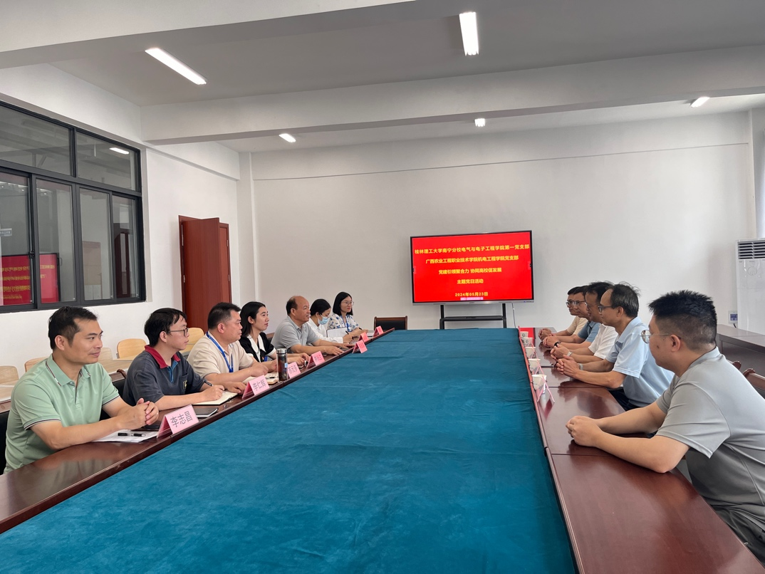 活动伊始,共同学习习近平总书记关于党纪学习教育的重要讲话精神。然后农工院机电学院党支部书记林兴兰和我院教工党支部副书记李崇山分别介绍了各自党支部党建方面的情况。接着我院党委副书记、院长黄孝平教授与广西农工院机电学院副院长陈宏昌进行了深入的合作洽谈和交流。共同探讨了如何通过党建活动,进一步加强师生之间的联系,提升教育教学质量,以及如何在未来的发展中更好地实现资源共享和优势互补。这一环节的交流不仅增进了彼此的了解,也为后续的合作奠定了坚实的基础。