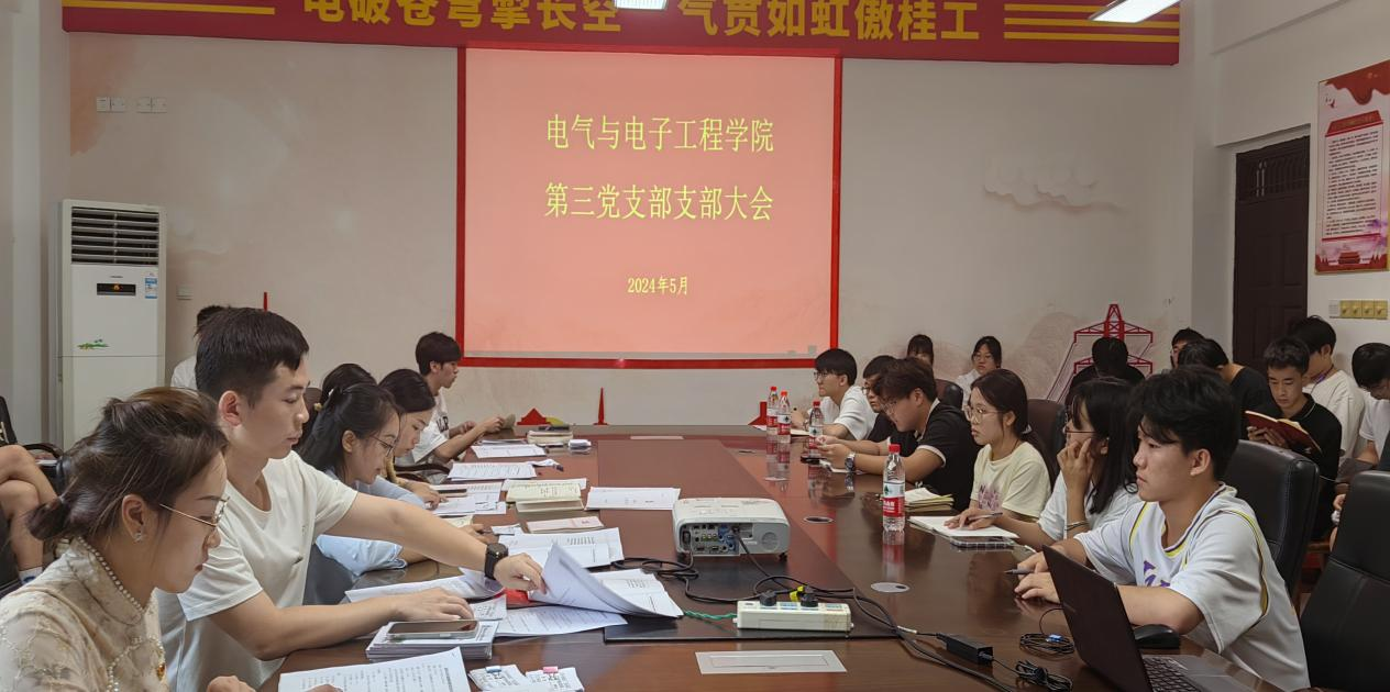 5月29日,电气与电子工程学院第三党支部在玉成楼4208召开支部大会。讨论接收韦林华等15名发展对象为中共预备党员。会议由第三党支部书记唐淑珍同志主持,全体党员参加了会议。