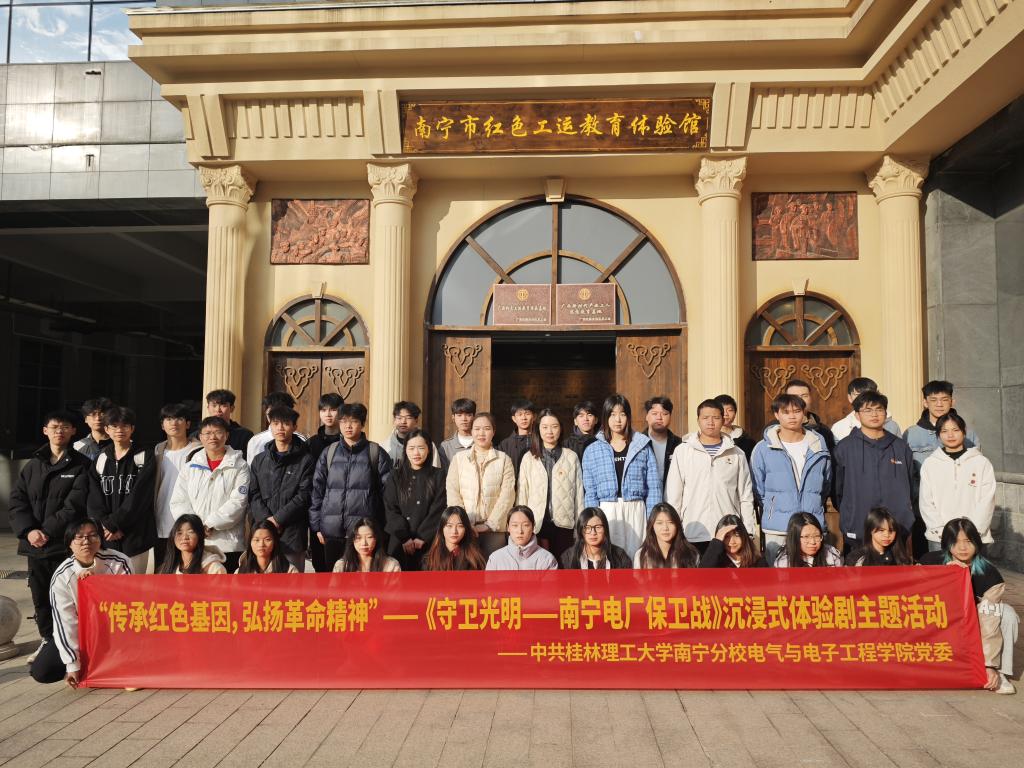 为大力传承红色基因,弘扬革命精神,强化爱国主义教育,推动党史学习教育常态化、长效化发展。12月19日,我院党委组织师生党员、入党积极分子前往南宁市红色工运教育体验馆开展“传承红色基因,弘扬革命精神”—《守卫光明—南宁电厂保卫战》沉浸式体验剧主题党日活动。