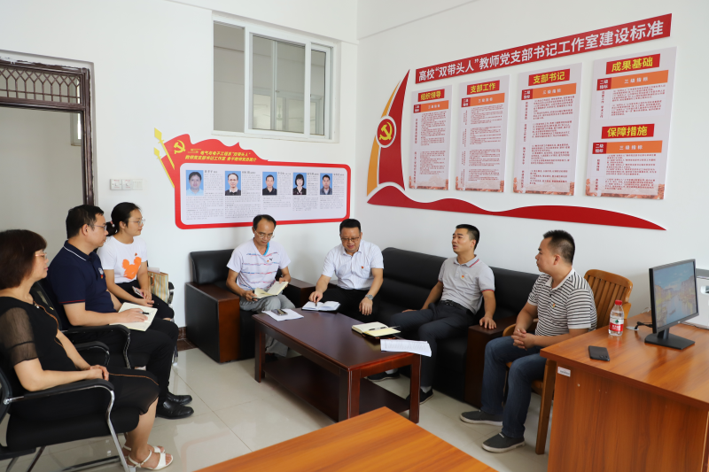 为体现党组织对高职称高学历教师的重视和关怀,7月1日,正值中国共产党成立101周年之际,太阳集团2138党委书记周国桥在党政主要负责人的陪同下,到我系“双带头人”教师党支部书记工作室看望慰问高职称、高学历党员教师代表黄孝平、李崇山、陆生鲜、路哲等。