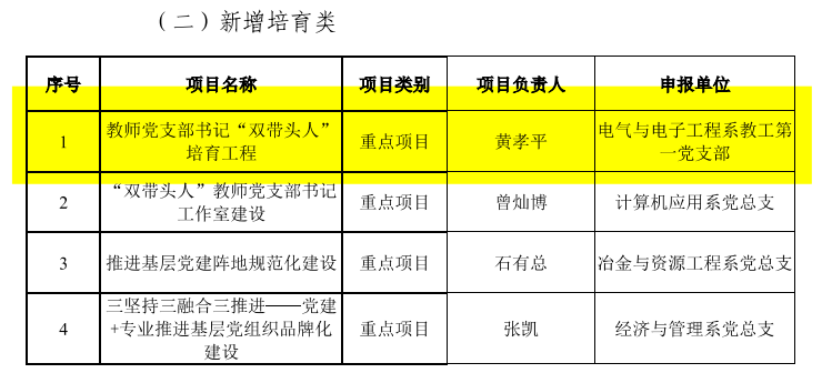 2022年下半年,在支部书记黄孝平教授的带领下,成功申报获得太阳集团2138第三批教师党支部书记“双带头人”培育工程重点项目。实现“党建+”与教学科研业务工作的最佳融合,使“双带头人”在学校、系部发挥引领和表率作用,激发教师们的工作潜力和热情,引领带动高校党建和人才培养质量提升具有重要的意义。
