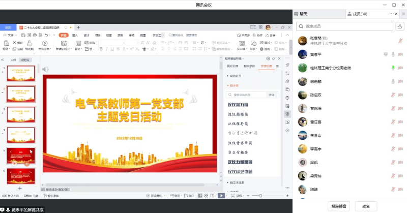 12月30日下午,我系第一党支部利用腾讯会议召开主题党日活动。活动由党支部书记黄孝平主持,支部全体党员参加。