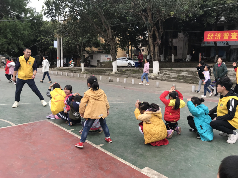 “树枝布偶娃娃”制作完成后,该支部志愿者们率领小朋友们来到操场,他们共同玩耍“老鹰捉小鸡”“跳绳”游戏。小朋友和志愿者们玩得不亦乐乎,操场上到处是他们开心地奔跑的身影,到处是他们欢快的笑声。