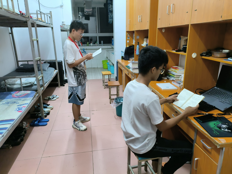 为了进一步加强宿舍环境建设,营造良好的宿舍氛围,减少安全隐患。10月13日,我系辅导员邢家豪及系部学生会队伍深入学生宿舍了解同学们宿舍生活、卫生及安全情况。