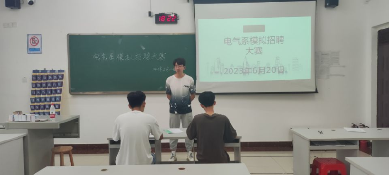 为加强大学生的职业规划意识,帮助其找准职业目标、提高求职技能水平。2023年6月20日下午,我系在玉成楼4304教室举办2024届模拟招聘大赛。系辅导员肖凯文、邢家豪出席并担任本次比赛评委。