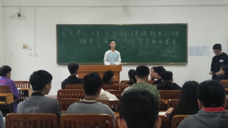 18日下午,我系心理工作站全体成员召集全系18级心理委员召开了工作安排会议,根据18级早晚自习的安排,对17级干事和18级试用干事进行了具体细致的分工,非常具体地布置好了测试工作。