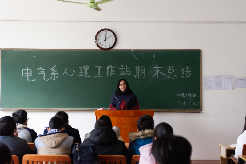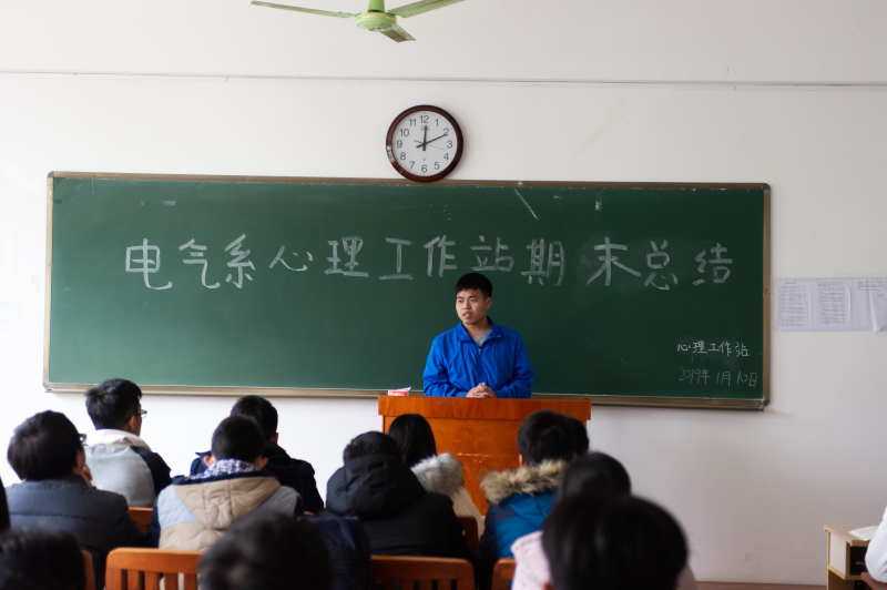 1月10日中午,我系心理工作站全体成员在玉成楼308教室行召开了期末总结会议。心理工作站全体成员以及指导老师李梅清参会。本次会议旨在对心理工作站2018-2019学年秋学期的工作进行总结。