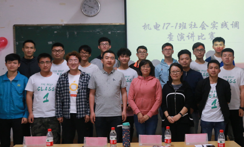 为进一步加强大学生社会实践能力,丰富实践内容,开拓学生探索社会所存在的问题以及提出解决问题的方案。我系机电17-1班于4月1日晚,在6204举行了社会实践调查报告演讲比赛。此次比赛有幸邀请到了我系党总支副书记兼学工组组长罗勇老师,辅导员刘恒老师、张明老师,我班班主任陆生鲜老师担任评委。同时还邀请到了17级部分班委以及我班同学到现场观看本次比赛。