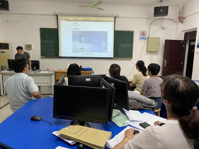 首先由韦义宏老师部署教研室新学期教学工作,重点对2023年春季教学材料归档和2023年秋季学期开学材料可能存在的问题做了陈述。接着以黄能健老师新上课课程《计算机网络与通信》和朱敦忠老师新上课课程《建筑公共安全系统》为例进行磨课和集体研讨,教研室其他成员作为学生认真听课。试讲结束后,教研室老师们针对试讲课程所存在的问题提出了很多有建设性的意见,包括课堂互动方式、信息化教学手段多样化、课程思政点的合理切入等,并分享相关实际教学案例进行讨论。