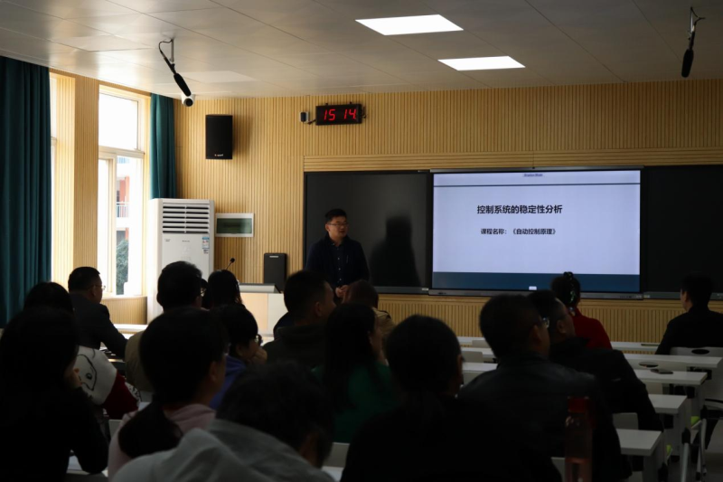 11月17日下午,为了更好地推进课程思政在教学课堂中的开展,电气教研室在2306智慧教室召开了以“自动控制原理”课程思政建设为主题的研讨会,会议由教研室主任王守峰老师主持。首先,王守峰老师以“系统稳定性分析”为例进行了课程思政的说课,分别从教学内容、学情分析、教法学法和教学过程四个方面进行了详细的讲解,教研室其他老师围绕着王老师的设计思路和课程元素的融入纷纷发表了自己的建议和看法。
