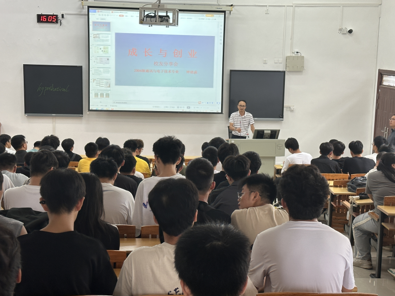 为加强系部与校友间的联系,更好地发挥优秀校友的榜样作用,激励年轻学子逐梦成长,在学校67周年校庆来临之际,我系邀请优秀校友钟建成回到母校,在启智楼403教室召开成长与创业分享会,分享会由我系主任周红锴主持,160多名建筑电气与智能化专业的本科生参会。