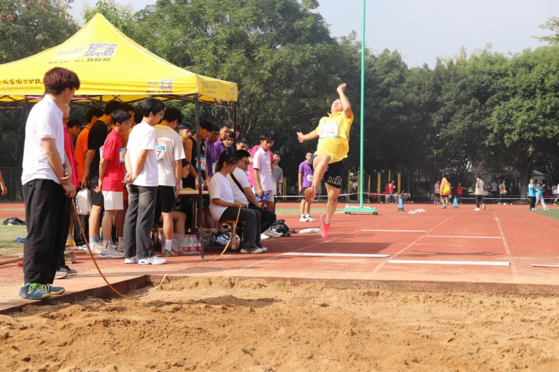 在激烈的跳远预决赛中,我们见证了荣耀的诞生。我系运动健儿的表现让人们感受到了跳远的魅力。每一次起跑,每一次腾空,每一次落地,都凝聚了他们的心血与汗水。最后,我系赖国镇、兰东分荣别获第四、第五名。