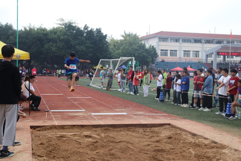 11月9号上午,我校在田径场举行男子组跳远预决赛,我系运动健儿在预决赛中稳定发挥荣获佳绩!