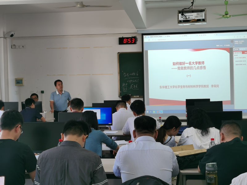 会上,党总支书记甘锦琛领学了师德师风简报第十期的内容,随后组织全体教职工观看了《模范榜样教育:先进模范事迹与榜样精神学习》中的第四项《如何做好一名大学教师——我做教师的几点感悟》关于东华理工大学化学生物与材料科学学院李荣同教授的专题节目,以此加强师德修养,同时提升教师个人素质。