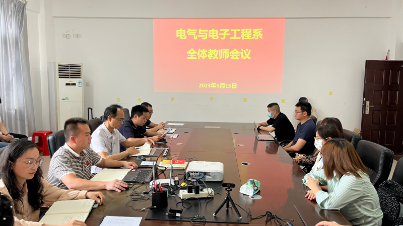 5月15日,电气与电子工程系在4208会议室召开师德师风教育暨意识形态专题教育会,系部领导班子及全体教职工参加会议,会议由系党总支书记甘锦琛主持。