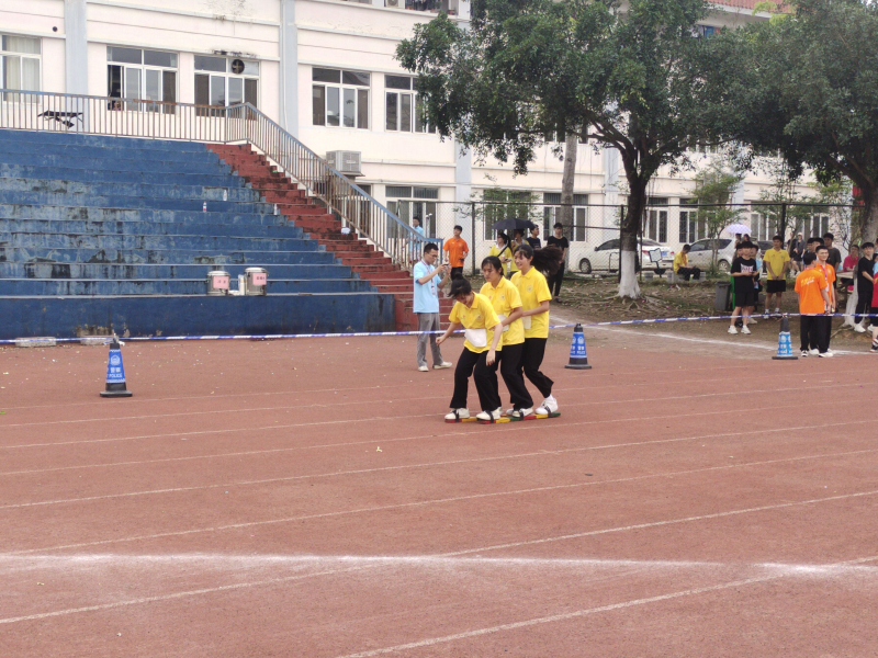 4月18日上午,100米三人板鞋竞速赛在田径场顺利进行。