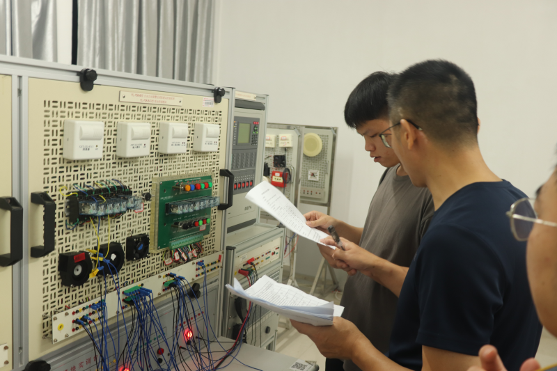 指导老师讲解竞赛规则及注意事项后,竞赛拉开帷幕。针对这次竞赛,参赛的同学们做了充足的准备。一条条导线,一个个按钮,一道道工序行云流水般在选手们手中穿梭;比赛结束后,指导老师们秉公平公正公开的态度,给予参赛选手详细的点评。