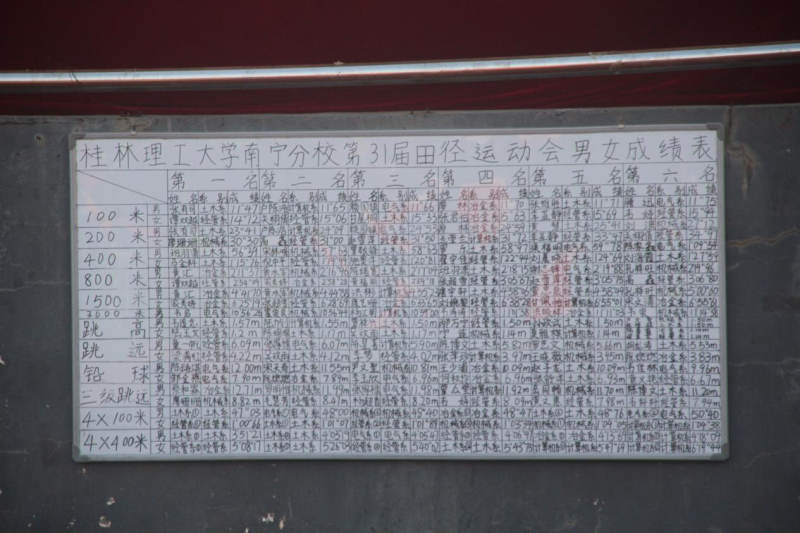 运动会期间,健儿们在赛场上进行了精彩激烈的角逐。一幕幕令人感动的瞬间,一场场永不放弃的较量,都被定格下来,成了永恒的画卷。此次校运会,在我系全体师生共同努力之下,取得了男子团体总分第二名以及优秀组织的好成绩。男子组:赖国镇、腾迅荣获100米比赛第三名、第六名;赖国镇在200米比赛中荣获第三名;梁福明、陈家鑫在400米比赛中荣获第四名、第六名;谢志锋在800米比赛中荣获第四名;韦启在3000米比赛中荣获第一名;张家禄在跳远和三级跳远中荣获第二名和第三名;陈玮淇、韦佳林在铅球比赛中荣获第一名、第六名;电气一队、电气二队,在4×100米比赛中荣获第二名、第六名;电气一队在4×400米比赛中荣获第三名。女子组:铅球比赛荣获第一名、第三名。