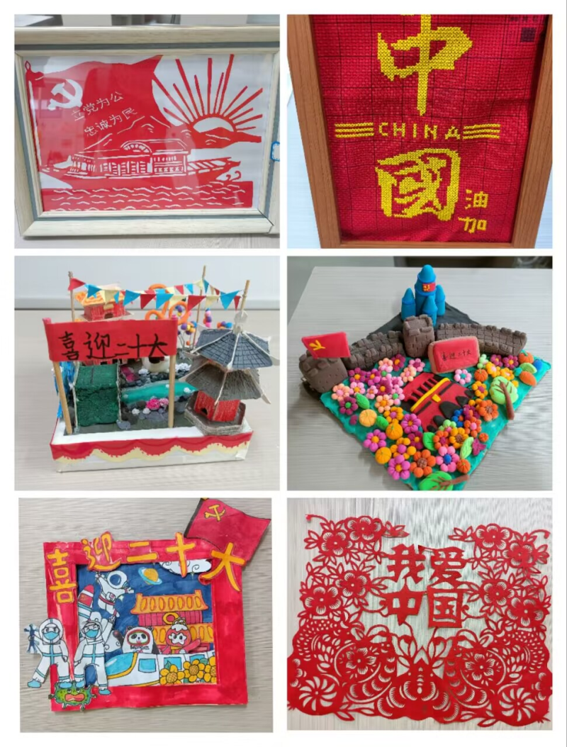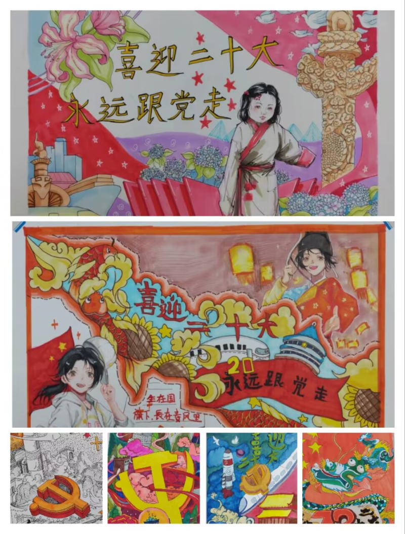 (上左 杨丝淇 《喜迎二十大》上中 黄馨玥《喜迎二十大永远跟党走》