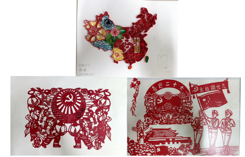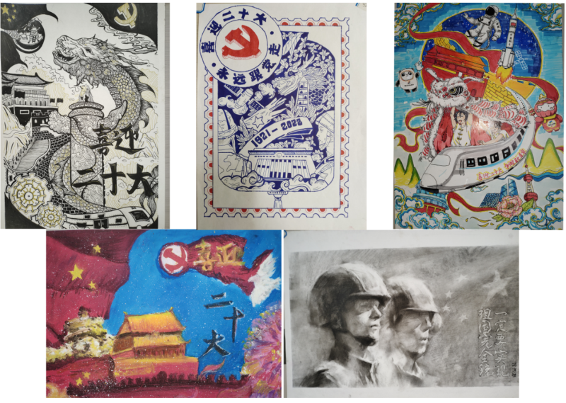 上右 黄金依《喜迎二十大,争做新青年》 下左 孟文婷 《喜迎二十大》