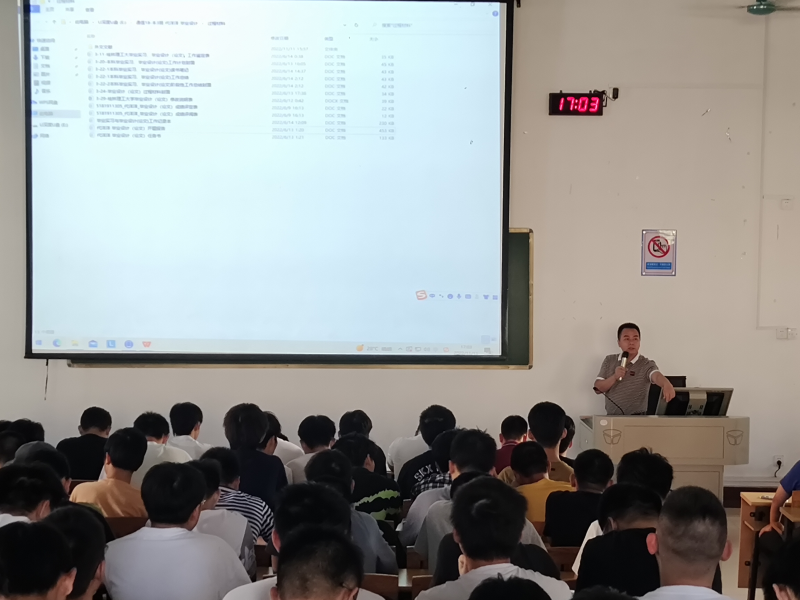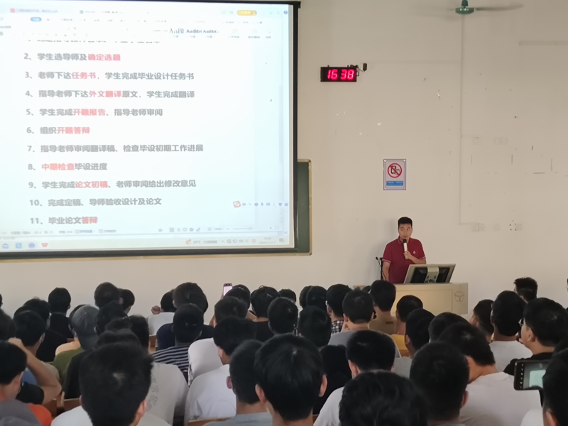 会议先由系党总支副书记兼学工组长唐淑珍宣布我系2023届本科就业动员会暨毕设答辩安排布置会正式开始;随后,由系主任周红锴为大家讲解就业、实习及毕设安排;紧接着,由系副主任李高宇作毕设详细介绍;最后,系党总支书记甘锦琛作就业动员讲话并解答毕业生疑问。