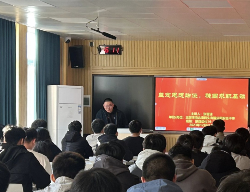 张哲瑞是我系2016级自动化专业的学生,目前就职于北部湾港北海码头有限公司。在本次分享会上,他从爱国、孝敬、尊师、重友等多个方面阐述了思想对求职的影响。他强调,在求职过程中,不应只看工资,而应将目光放长远,坚定自己的思想,从多方面、多角度考虑自己的求职方向。最后,他真诚地提醒同学们要讲正气、守规矩、顾大局、重学习、讲效率,这样才能使自己的求职之路更加顺利,减少人生中的困难。