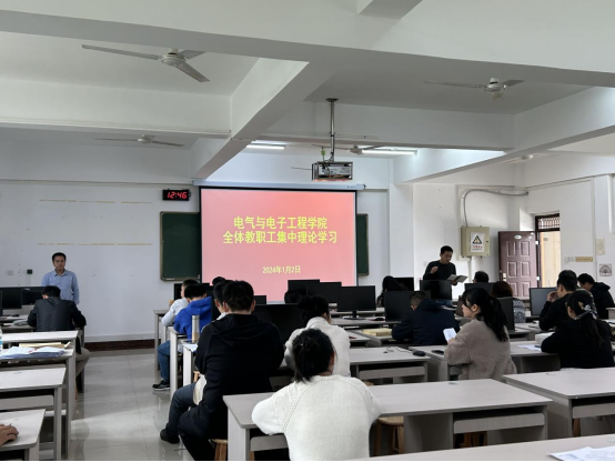 2024年1月2日,我院在4402教室召开全体教职工集中理论学习会。我院领导班子及全体教职工参加会议。会议由学院党委书记甘锦琛主持。