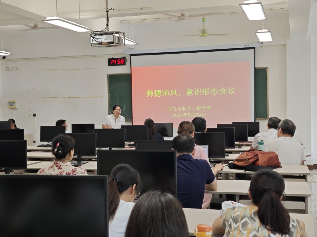 5月24日下午,我院在玉成楼4402召开全体教职工大会,学院领导班子成员及全体教职工参加会议,会议由学院党委副书记唐淑珍主持。