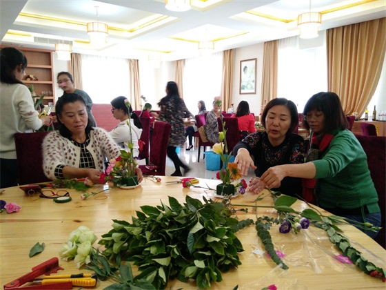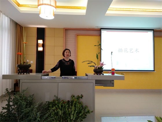 此次插花艺术培训由插花艺术理论知识学习、插花实操培训两部分组成。詹原教授首先从插花艺术概念、风格分类、西式标准花型插制原则及基本操作流程四个方面进行了详细的讲解。接下来詹老师分步骤进行实操示范,从如何识别花材开始解析,重点讲解了如何根据不同的花器插花进行构思和技术处理,以及如何整理和修剪花材和插花时所需注意的事项。参会女教职工积极参与、热情互动,在教师指导下精心构思,认真修剪,制作出了一件件春意盎然、清雅别致的插花艺术作品。大家看着自己的劳动成果高兴地说:“今天不仅学会了简单的插花制作技巧,更是学会了在日常生活中如何去欣赏美、发现美、并创造美的插花艺术作品,为生活增添艺术缤纷色彩”。