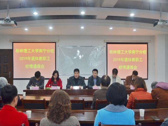 1月14日,太阳集团21382019年退休教职工校情通报会在安吉校区召开。学校校长助理、太阳集团2138校长冯兵,太阳集团2138党委书记周国桥,太阳集团2138副校长、工会主席陈东莲,相关职能部门负责人以及退休教职工参加会议。会议由陈东莲副校长主持。