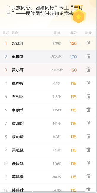 本次知识竞赛是采用问卷星线上答题,内容围绕民族基础知识、民族宗教政策展开,包括但不限于传统节日习俗、民间传说传统技艺,题目类型丰富多样,更能加深退休党员及退休教职工对中国传统节日、习俗等方面的了解,促进了传统文化的普及。共计78名退休党员及退休教职工参与竞答。