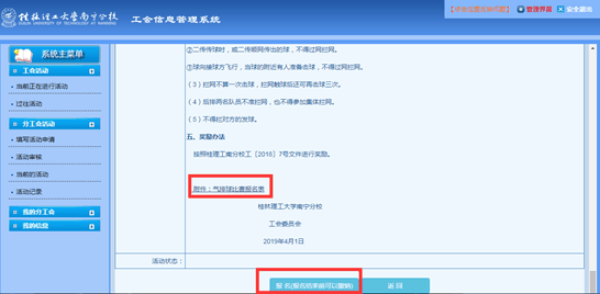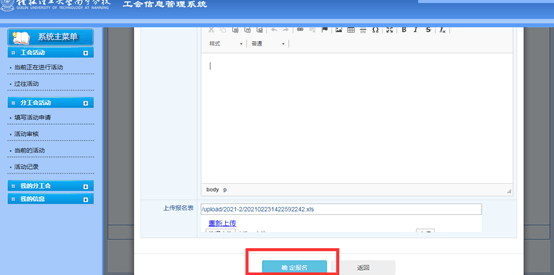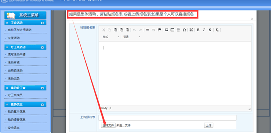 (1)集体活动报名操作:各分工会文体委员上传报名表,确定报名。