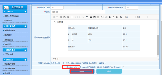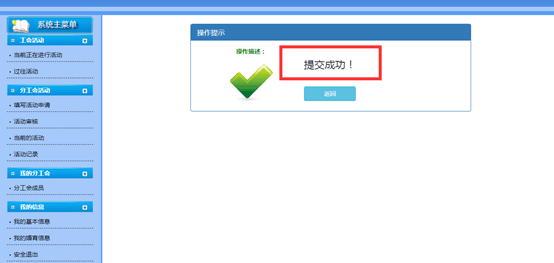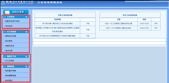 1.登录工会信息管理系统。由各分工会文体委员发起填写“活动申请”,并提交审核。