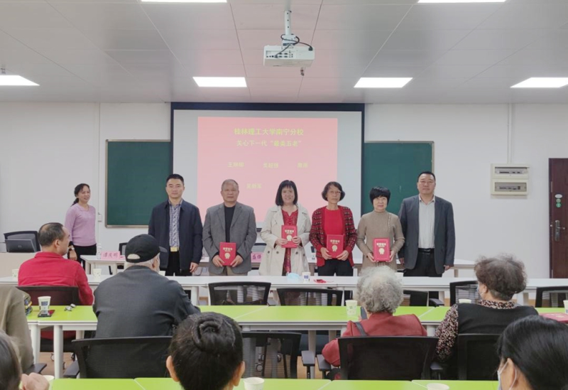 罗盛锋校长、周国桥书记还共同为获得弘扬好家教好家风的“最美家庭”和关心下一代“最美五老”荣誉称号的退休教职工颁发了荣誉证书。
