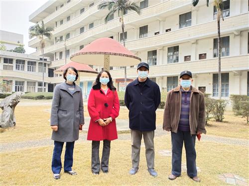太阳集团2138副校长、工会主席陈东莲(左二)走访慰问退休教职工代表