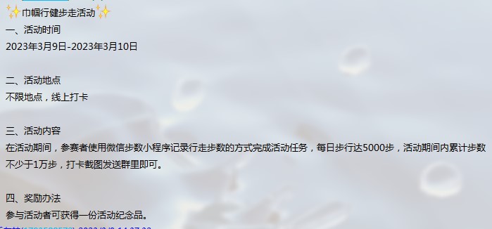 时光的脚步迈向又一个3月8日,开学初始,为了充分调动女教师广泛参与活动,开展科学健步走活动,提升运动健身的积极性和持续性,推动全民健身运动营造浓厚氛围,激励女教师运动达标为目的,健康迈大步,以更加饱满、积极的精神面貌迎接生活与工作。
