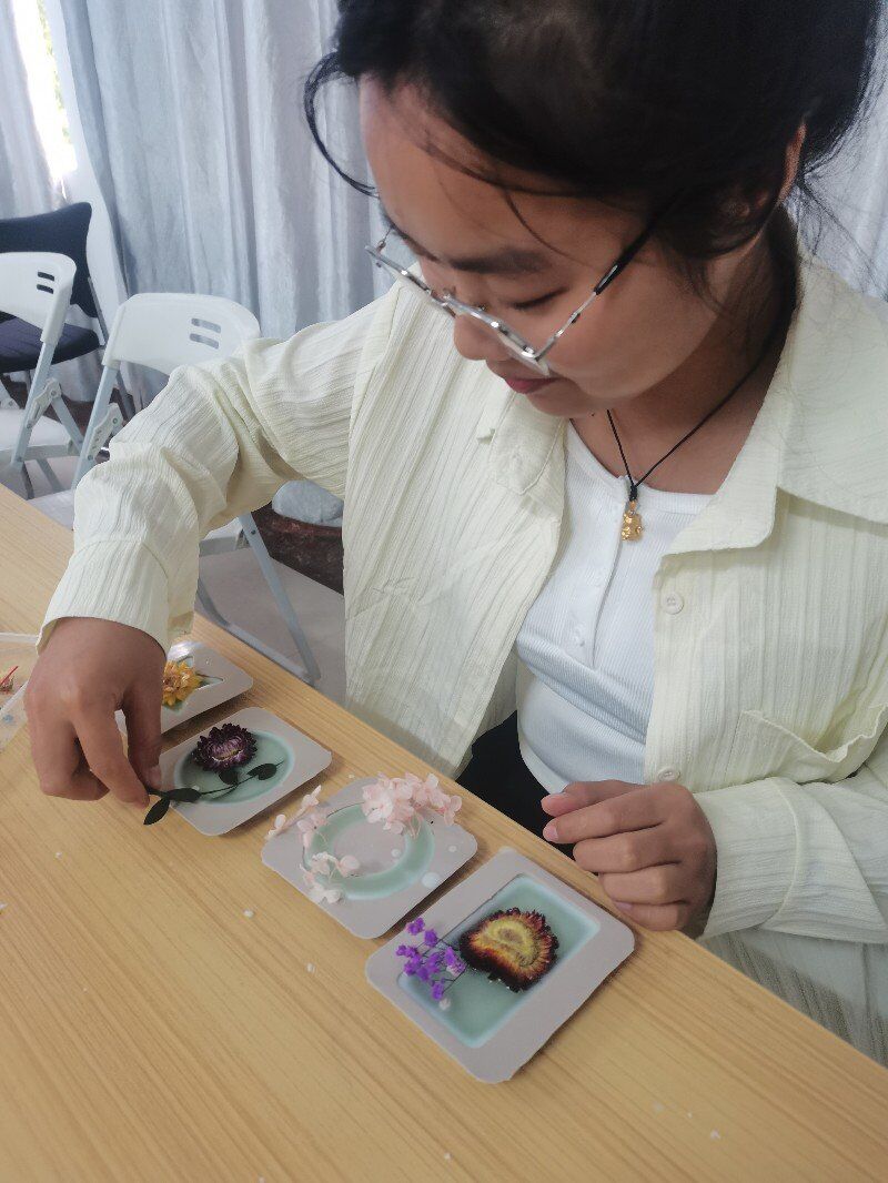 活动现场,芳香四溢。戎玥老师首先介绍了香薰的由来、类型及使用方式,详细讲解了香薰蜡片的制作过程,大家跟着戎老师的讲解,融化蜡块、倒入蜡液、添加精油、挑选干花、摆放装饰,等到蜡液凝固,充满浪漫气息的香熏蜡片便制作完成啦。