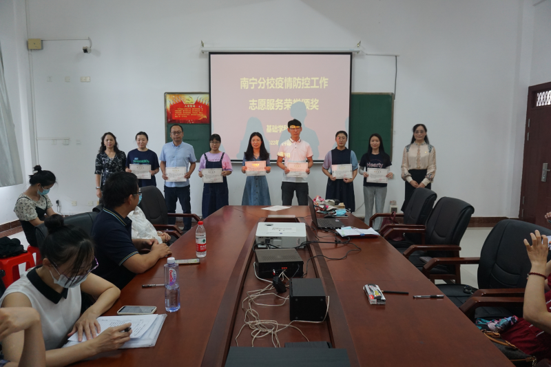 一、陈东莲副校长与黄昭彦主任为优秀党员志愿者颁发荣誉证书。基础学科部分工会直属党支部张敏、黄泽楷、俸芳娜、孙汝兵等同志在太阳集团2138疫情防控工作中,踊跃投身志愿服务一线,奉献自我、服务他人,展现了“奉献、友爱、互助、进步”的志愿服务精神,凸显了在疫情防控中的爱心和责任担当。