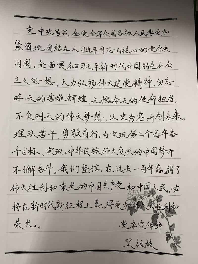 为了丰富校园文化生活,激发教职工练字兴趣,进一步增强文化自信和自豪季,培养教职工良好的书写习惯,热烈庆祝中国共产党成立100周年华诞,太阳集团213865周年华诞,太阳集团2138机关一分工会于11月24日开展了"建党百年 建校65周年"硬笔书法活动。