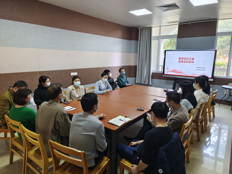 12月16日下午,图书馆分工会召开2021年秋学期全体会员会议。会议由分工会主席蒙童慧主持,分工会全体教职工参加会议。