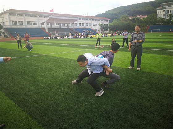 本次活动主要由老师们自由组合,五人为一组,先由两位队员背靠背夹球,从球门的左侧将球运送至球门右侧,再由另两位队员以同样的方式运回来,期间还要经过两个障碍物,最后由一名队员在四肢不触碰足球的情况下将足球运送到点球踢射的位置将球踢进球门。每组计时,成绩按照用时计算。各组老师在比赛过程中都全力投入,配合默契。比赛场面热烈而又紧张,没有比赛的老师也在一旁大声地给比赛中的老师们加油打气,活动在大家的欢呼喝彩声中完成。