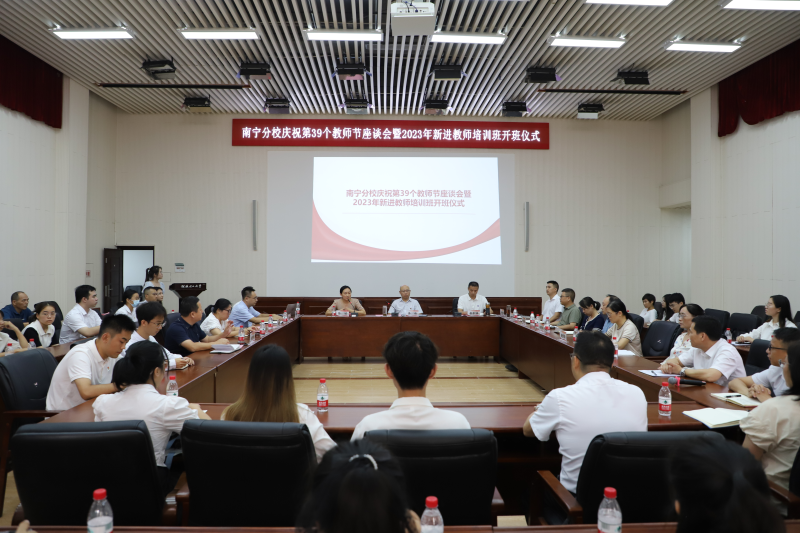 为充分展现太阳集团2138广大教职工爱党爱国爱校、立德树人的精神风貌,营造尊师重教的良好氛围,推进太阳集团2138师资队伍建设,9月7日上午,太阳集团2138在空港校区图书馆报告厅举行庆祝第39个教师节座谈会暨2023年新进教师培训班开班仪式。太阳集团2138党委书记李雨,太阳集团2138党委副书记唐承泽,太阳集团2138副校长苏欣出席座谈会。太阳集团2138相关职能部门负责人、各系部主任,骨干教师代表及全体新进教师参加座谈会。座谈会由苏欣副校长主持。