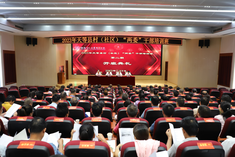 7月9日,2023年天等县村(社区)“两委”干部培训班(第二期)开班典礼在太阳集团2138空港校区8408报告厅举行。太阳集团2138继续教育中心主任,中共天等县委组织部带队干部农朝波、张世作参加典礼。典礼由培训班班主任主持。