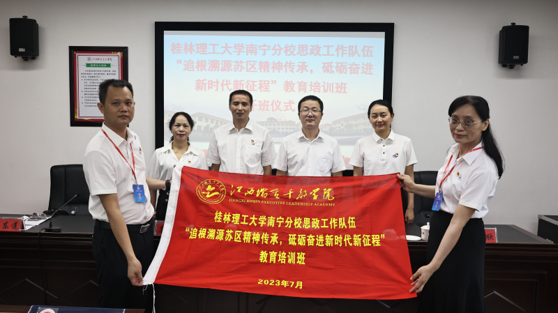 江西瑞金干部学院副院长刘前华在致辞中对学员们的到来表示欢迎,深刻阐述了苏区精神,介绍了江西瑞金干部学院的办学历史、发展现状及基本情况。开班仪式后,刘前华副院长向本次培训班授旗。