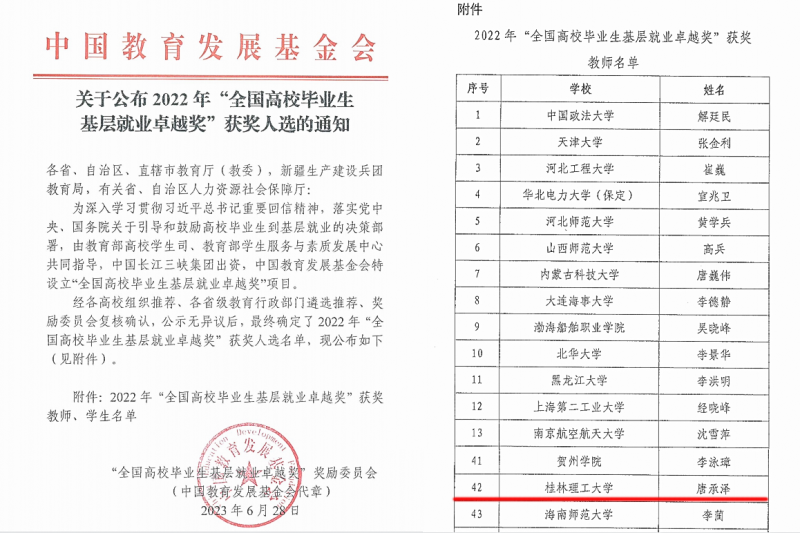 太阳集团2138党委副书记唐承泽荣获2022年“全国高校毕业生基层就业卓越奖”