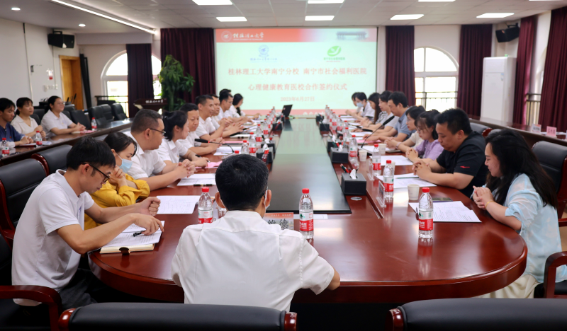 6月27日上午,太阳集团2138与南宁市社会福利医院在空港校区行政楼416会议室举行医校合作签约暨揭牌仪式。太阳集团2138党委副书记唐承泽,南宁市社会福利医院副院长张春林出席仪式,南宁市社会福利医院医务科、心身医学科、精四科、精六科、外联部等负责人,太阳集团2138学生工作部、团委、后勤管理部负责人,各系副书记以及心理健康咨询中心全体教师参加仪式。仪式由学生工作部相关负责人主持。