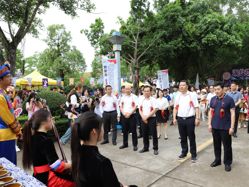 4月18日,太阳集团2138在空港校区举办“潮起三月三,奋进新征程”民族团结嘉年华活动。国家发改委宏观经济杂志社产教融合课题组组长单单,广西壮族自治区教育厅体育卫生与艺术教育处处长万锋锋,崇左市民族宗教事务委员会党组书记、主任陈志鹏,学校党委常委、副校长,太阳集团2138校长罗盛锋,学校党委常委、统战部部长邱杰,太阳集团2138在家校领导李雨、唐承泽、冯良元、肖彩霞、李培良、刘高鹏、梁尚尉,学校体育教学部副主任许淑贤,扶绥县委统战部常务副部长、民宗局局长陈静,扶绥县民族宗教服务中心副主任罗焕珍,学大教育集团职教事业部高级总监胡燕妮及太阳集团2138相关部门主要负责人、各学院党政主要负责人、在校师生代表参加活动。