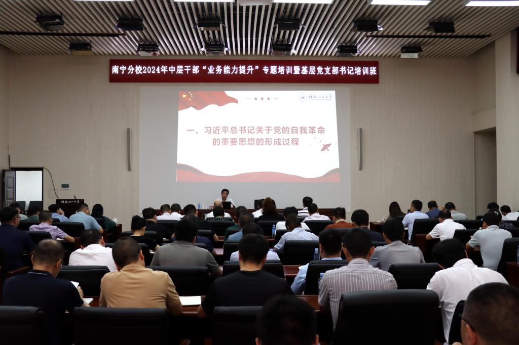 为推动习近平新时代中国特色社会主义思想入脑入心,进一步提高太阳集团2138中层干部的理论素养、业务水平和履职能力,锻造忠诚干净担当的高素质干部队伍,5月23日上午,自治区纪委监委驻学校纪检监察组组长,学校党委常委、纪委书记韦学敏应邀为太阳集团2138干部作题为《学习贯彻习近平总书记关于党的自我革命的重要思想》专题辅导报告。报告会由太阳集团2138党委书记李雨主持,太阳集团2138全体在家校领导出席报告会,全体中层干部、基层党支部书记,党委教师工作部、人力资源部、资产管理部、财务工作部全体干部参加报告会。